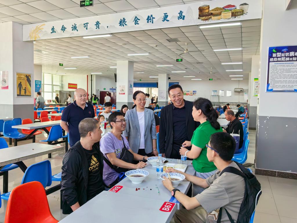 冯锋书记一行来到学校食堂,对学校食堂环境卫生、食品安全、菜品种类和质量方面进行了检查。还与就餐的学生及家长进行亲切交谈,仔细询问学生及家长对食堂价格、菜品种类等方面的感受,了解新生们对食堂的意见和需求。
