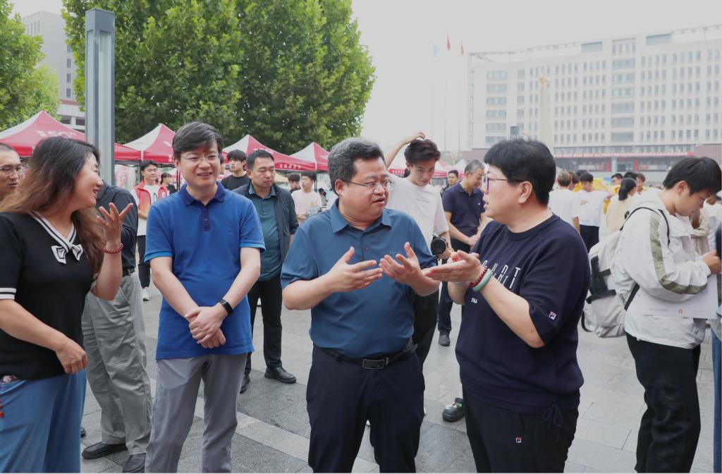 9月9日上午,党委副书记、院长冯国瑞,党委副书记桑楠,党委委员、副院长葛波蔚,党委委员、副院长刘汉涛,有关部门负责人前往校园迎新现场,检查指导迎新工作,看望2023级新同学。