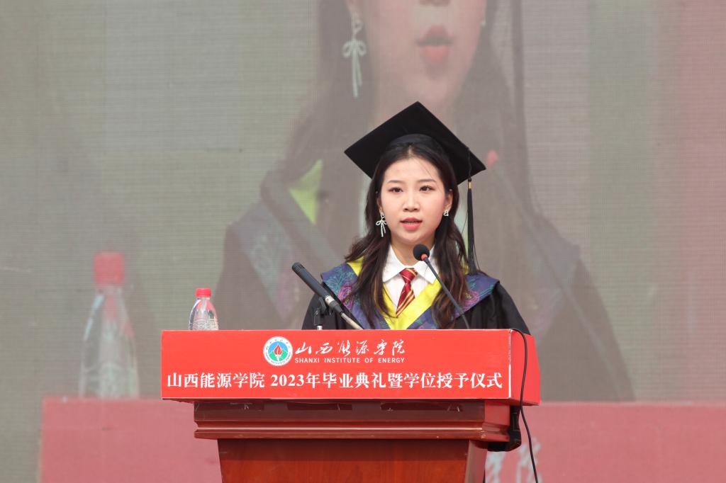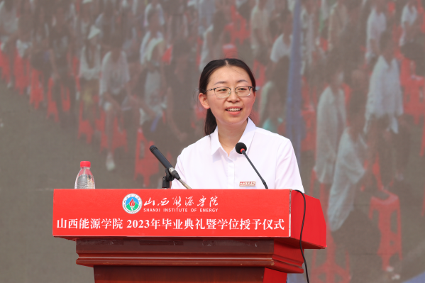 教师代表资源与环境工程系党总支副书记、副教授任丽霞在发言中向全体毕业生发出号召,唯有学习,方能行稳致远;同时鼓励大家欣赏自己,永葆自信;厚植责任感,做靠谱之人;勉励大家将蓬勃青春与家国情怀同频共振,在这个大有可为、大有作为的时代不断修炼自我、敢想敢为、善作善成!
