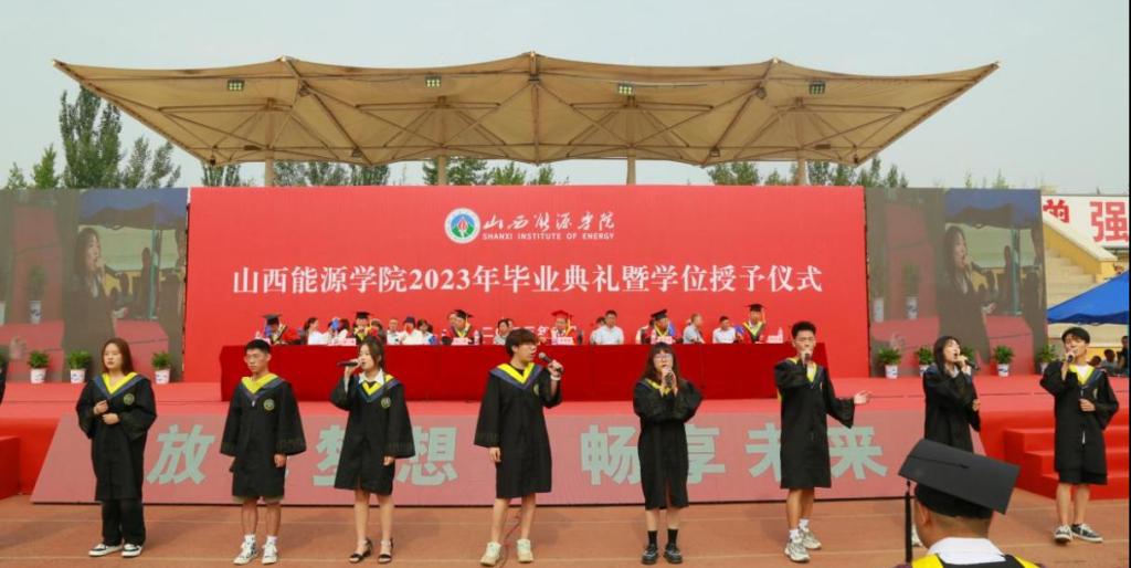 2023届毕业生代表手持鲜花向学校保卫、教务、后勤等多部门基层教职工致敬感谢,并用青春洋溢的歌曲祝福毕业生们带着梦想的青春誓言,展翅高飞。
