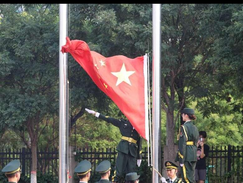 上午8时,在庄严的中华人民共和国国歌《义勇军进行曲》声中,伴随着冉冉升起的五星红旗,毕业典礼拉开帷幕。