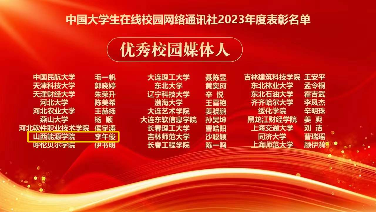 bat365官网矿业工程系学生李午俊获“优秀校园媒体人”荣誉称号