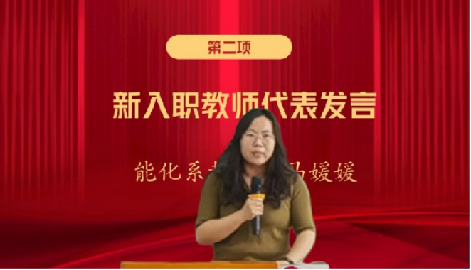 典礼上,教师代表能源化学与材料工程系马媛媛老师进行了发言,分享了自己的教学经验和感悟。她表示,作为新入职教师会始终保持对教育事业的热爱和执着追求,勇于探索创新教学方法和手段,为培养更多优秀人才贡献自己的力量。