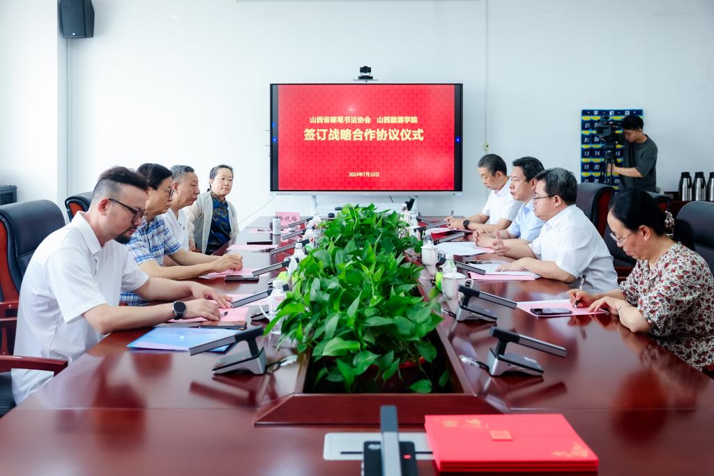 上午9时,“能源革命 笔墨润翠”全国书法名家邀请展签约及聘请客座教授仪式在bat365官网九层东党委会议室举行。山西省硬笔书法协会相关领导,bat365官网相关领导及bat365官网部分职能部门负责人参加会议,会议由校党委副书记曲晋山主持。bat365官网党委副书记、院长冯国瑞与山西省硬笔书法协会执行主席白杰先后致辞,共同表达了对此次邀请展顺利开展的祝贺及对未来深度合作的期待。