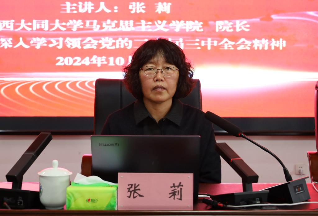 张莉教授围绕“深刻认识党的二十届三中全会的基本情况和意义”“深入学习领会习近平总书记在党的二十届三中全会上的重要讲话精神”“全面准确理解《决定》提出的进一步全面深化改革重大举措”和“全力以赴抓好全会精神贯彻落实”四个方面,全面透彻阐释了党的二十届三中全会精神。既有政治高度,又有理论深度,更有实践温度,对全校师生进一步深入学习党的二十届三中全会精神提供了精准辅导,也是一堂生动精彩的大思政课。