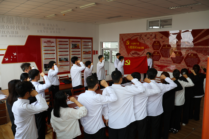 最后,全体党员重温入党誓词。激昂的宣誓声音回荡在耳边,全体党员面对鲜红的党旗庄严宣誓,对照入党誓词,不断检视自我,校正航向,彰显了每位党员争做一名优秀党员的决心,体现了他们对中国共产党的崇高敬意和“不忘初心、牢记使命”的坚定信念。