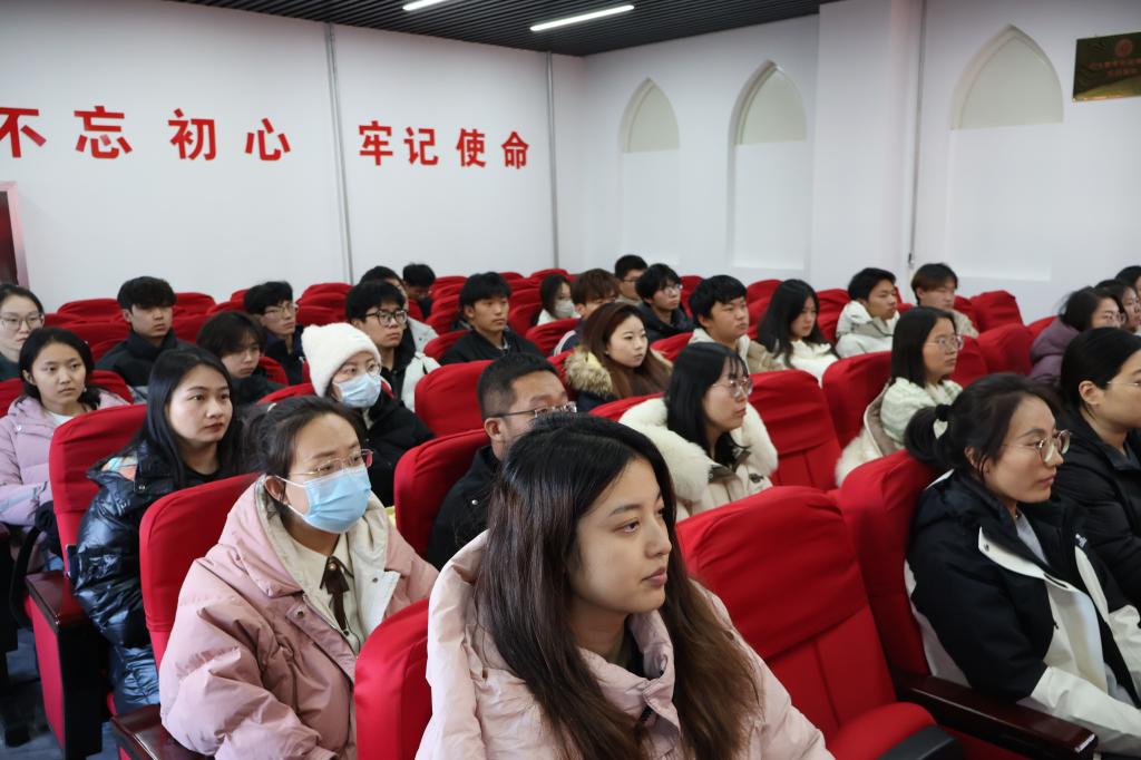 鲜活的文物故事后,师生共同聆听专题党课——《信仰的召唤——百年誓词》。以“入党誓词演变”为主线,在讲解员的生动讲授下,再现了井冈山时期农民党员贺业佐在榨油坊秘密入党、书写24字誓词的忠诚,呈现了抗战时期入党誓词中“要做群众的模范、为共产主义事业奋斗”的时代担当。艺术化的呈现方式打破了传统党课的刻板印象,让师生在情感共鸣中体会共产党人“初心不改、使命不渝”的精神内核,接受了一场深刻的理想信念教育。