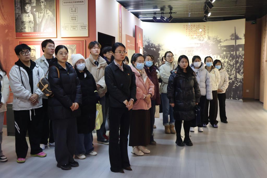 师生们边走、边看、边听,不时驻足交流。在“山西牺牲救国同盟会”展区,大家详细了解了纪念馆作为抗日救亡运动重要发源地的历史地位;在董天知烈士相关展品前,结合此前了解的英雄事迹,进一步感受到革命先烈“捐躯赴国难”的壮志豪情。此次参观并非简单的“打卡”,而是一次“沉浸式”的历史学习,让师生在实物实景中触摸革命温度,深刻理解“红色政权来之不易、新中国来之不易”,坚定了传承红色血脉的信念。