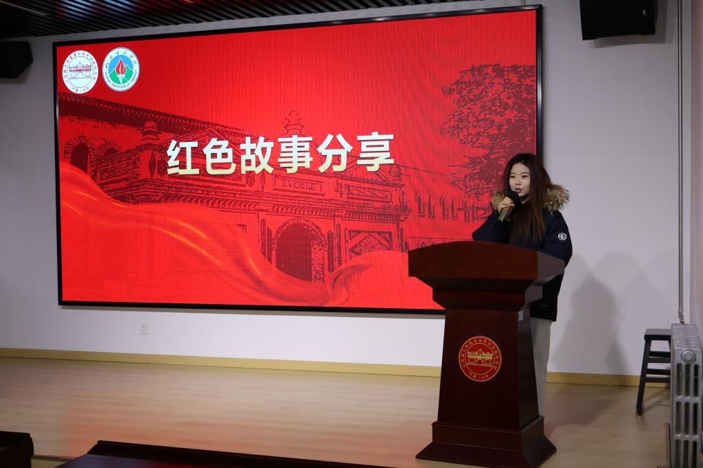 “太行山上的铁血忠魂——董天知烈士,用29岁的生命践行了‘抗日到底’的铮铮誓言……”在红色故事分享环节,系青马工程学员安晓月深情讲述了革命烈士董天知的英雄事迹。从少年立志救亡图存,到狱中坚贞不屈,再到敌后游击战争中身先士卒,学员们以生动的语言、真挚的情感,还原了革命先烈为民族解放事业不懈奋斗的一生,让在场师生深受触动。