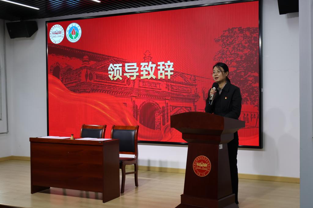 随后,系党总支副书记张莹代表系党总支致辞。她指出,系党总支始终坚持为党育人、为国育才,立足国家“双碳”战略需求,以“双带头人”教师党支部书记工作室和“强国行”专项行动团队为依托,打造了“党建引领聚合力,‘碳’无止境促发展”特色党建品牌。此次联建是将红色基因融入学科发展、革命精神融入人才培养的关键实践,更是推动党建与育人深度融合的重要探索。她表示,期待通过“组织共建、资源共享、活动共办、品牌共塑”,实现双方优势互补,共同为培育担当民族复兴大任的时代新人贡献力量。