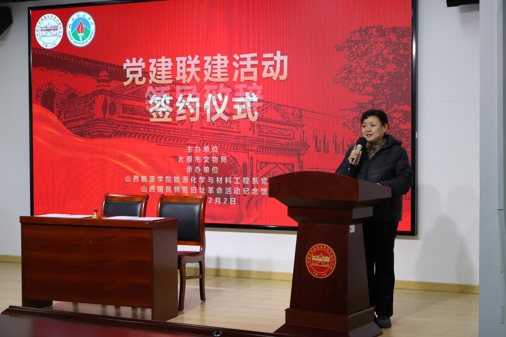 为深入贯彻习近平新时代中国特色社会主义思想,全面落实新时代党的建设总要求,推动红色资源与党建育人深度融合,2025年12月2日,能源化学与材料工程系党总支与山西国民师范旧址革命活动纪念馆联合举办党建联建签约仪式暨系列主题活动。系副主任(主持行政工作)李永峰、党总支副书记张莹,山西国民师范旧址革命活动纪念馆党支部书记、副馆长杨芸出席仪式,系师生党员代表、纪念馆思政课团队及宣教部工作人员共同参加本次活动。本次联建活动亦受到山西电视台的关注,媒体团队围绕活动开展情况,对参与师生代表展开专题专访,挖掘红色教育背后的育人故事。