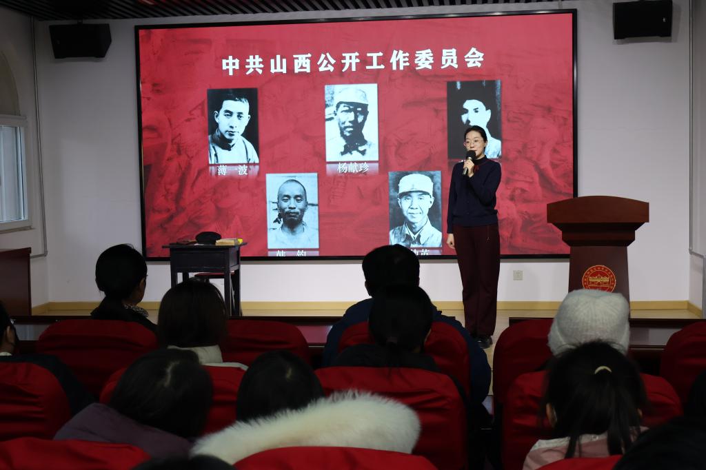 活动开篇,山西国民师范旧址革命活动纪念馆党支部书记、副馆长杨芸致欢迎词。她以“每一座革命旧址都是党的红色宝库”为切入点,回顾了八九十年前青年学子在此立下“牺牲救国、决死抗敌”誓言、奔赴抗日战场的峥嵘历史,强调“铭记历史不是延续仇恨,而是以伤疤为戒,守护当下和平、开创未来”。她寄语在场师生,要从革命先辈舍小家为大家的奉献中汲取力量,在祖国需要时勇担重任,以专业本领助力国家发展。