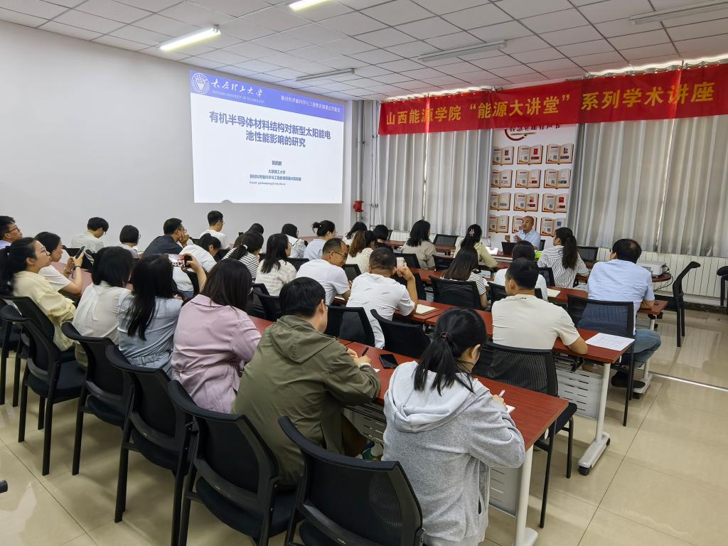 为营造浓厚学术氛围,拓宽师生科研视野,2025年5月20日,bat365中文官方网站能源化学与材料工程系有幸邀请到太原理工大学郭鹍鹏教授,在强能楼一层2-101开展了一场主题为“有机半导体材料结构对新型太阳能电池性能影响的研究”科研讲座。此次讲座吸引了众多师生参与,现场座无虚席,学术氛围热烈。