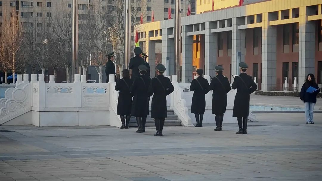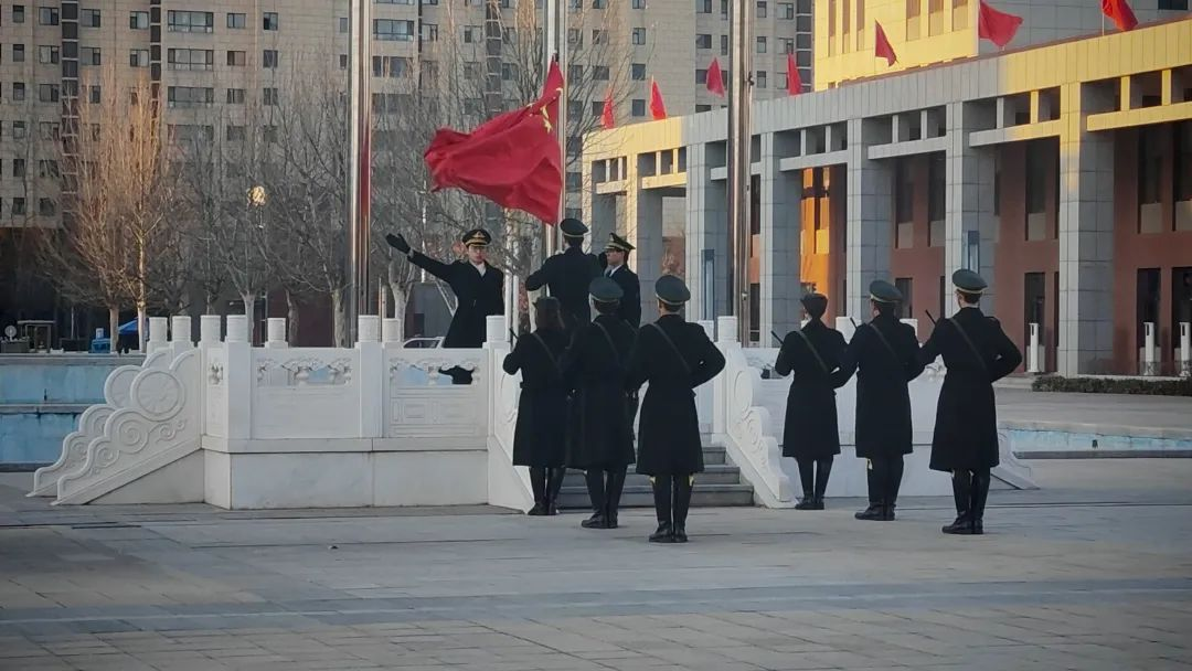 《义勇军进行曲》奏响,升旗手将国旗奋力扬起,五星红旗缓缓上升,全体师生庄重地行注目礼,现场满是敬意。