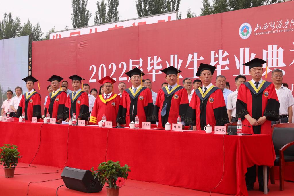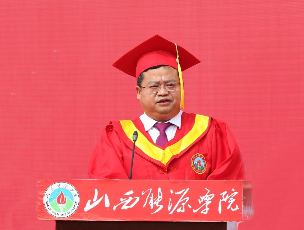 典礼上,党委副书记、副院长(主持行政工作)冯国瑞代表学校向顺利完成学业的2022届全体毕业生表示热烈祝贺。他说,2018年入校的同学们,是学校换道起航、加速发展的见证者、是奋战“十三五”开局“十四五”的亲历者、更是bat365中文官方网站勇载史册的耕耘者。面对即将远行的学子,冯国瑞深情地与大家分享了山能的抗疫故事,希望同学们始终保持对梦想的追逐,做“忠心而至诚”的山能人,秉承坚定的理想信念,用实际行动诠释对国家、对民族、对事业的忠诚。