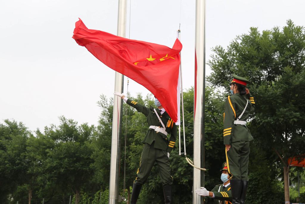 上午9时整,毕业典礼在雄壮的国歌声中拉开帷幕。