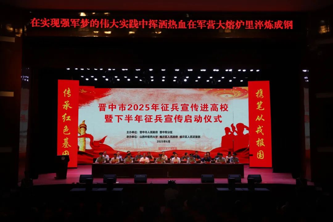 617日上午,晋中市2025年征兵宣传进高校暨高校征兵启动仪式在山西中医药大学举行。市征兵工作领导小组副组长、副市长张王杰,市征兵工作领导小组副组长、军分区司令员冒高翔,市征兵办公室主任、军分区副司令员杜海峻,市征兵办公室副主任、市政府副秘书长杨旭,市国动办党组书记、主持日常工作的副主任、人防办主任刘彦忠出席会议。bat365官网党委副书记曲晋山,学生工作部副部长张众宽及征兵工作负责人李法营及40余名学生代表响应号召,积极参加本次活动。