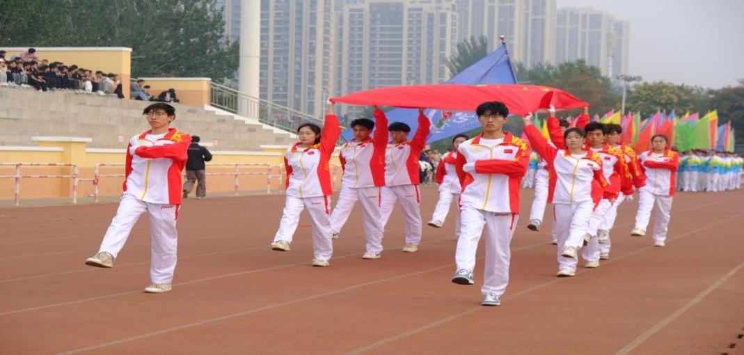 伴随着激扬高亢的运动员进行曲,15支方阵依次入场。国旗庄严,校旗飘扬,bat365官网国旗护卫队昂首挺胸、步伐整齐,高举中华人民共和国国旗走过主席台。紧随其后的是彩旗队、花束队、裁判员代表队、教职工代表队及各系代表队方阵,他们精神饱满,口号震天,展现了bat365官网师生团结向上,积极进取的风貌。