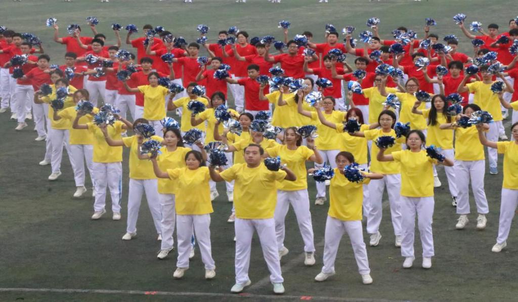 伴随着欢快的音乐,教职工和各系学生团体操表演引得现场掌声雷动,回响不断,花球翻飞映晴空,彩扇飘扬舞苍穹,巧妙变换的队形和激情如火的舞步处处彰显着当代大学生的蓬勃热情,每个动作都凝聚着汗水与努力,每一次亮相都洋溢着青春的热情与风采。