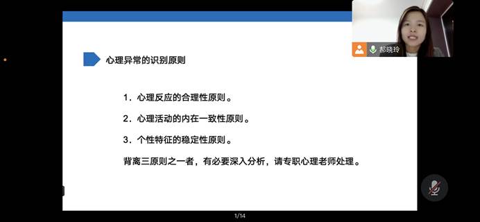 在讲座中,老师们就心理委员培训中的人员筛选、团队组建、动机激发,以及心理健康相关知识技能传授等工作要点逐一进行讲解,强调心理委员应在工作中树立保密意识,同时了解与保密突破相关原则。