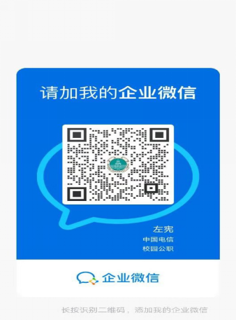面向bat365中文官方网站的太原电信用户师生,优惠政策1:可自愿免费领取20G国内流量,分2个月赠送,每月10G。优惠政策2:专为bat365中文官方网站师生提供教学流量卡,内容为30G全国流量,70G校区流量,合计100G流量,赠送全国通话300分钟,有效期一个月。可通过添加以下电信工作人员企业微信办理(微信扫码):