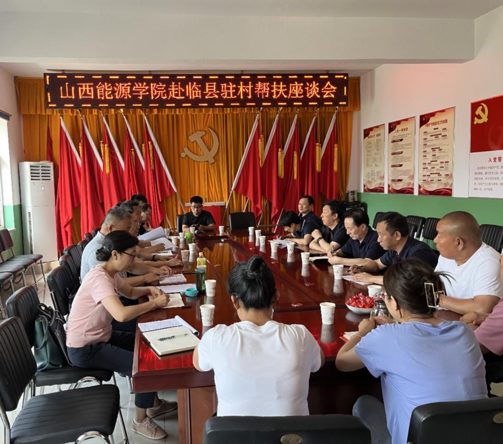 调研组在黄家沟村召开了驻村帮扶工作座谈会,学院包村队长姚晓东汇报了近期2个村的帮扶工作进展情况,上南沟村和黄家沟村党支部书记先后汇报了他们关于本村基础设施建设和产业发展规划的思考和建议,临县副县长雒丽霞和湍水头镇党委书记高艳飞分别通报了县乡两级帮扶工作总体部署和近期工作安排,省直驻临县工作队大队长任启志发言时指出,党委书记亲自带队深入帮扶村调研,充分体现了能源学院党委和冯锋书记贯彻落实中央、省委重大决策部署的坚定立场,体现了对帮扶工作的高度重视,并通过以会代训的方式,就怎样“驻村”、如何“帮扶”做了针对性的业务培训,要求驻村队员严守工作纪律,以良好的精神面貌做出新的业绩。